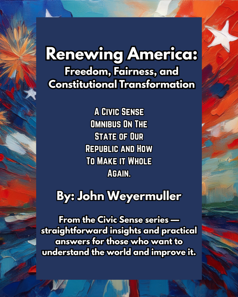 My next release: “Renewing America: Freedom Fairness and Constitutional Transformation” is a collection of three of my previous books, all centered around the renewal of American society and government through Freedom, Fairness, and Articel V of the US Constitution. The three books have been revised, updated, and put together into a cohesive format.