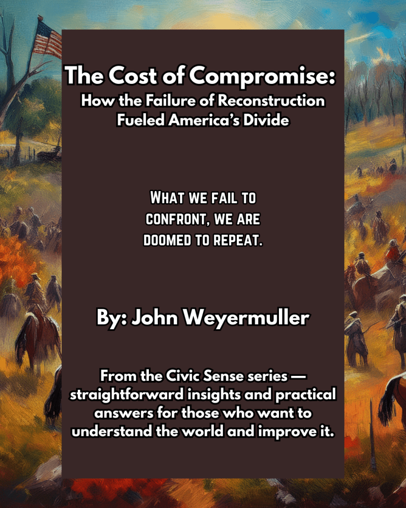 My most recent release: “The Cost of Compromise: How the Failure of Reconstruction Fueled America’s Divide” focuses on exploring the importance of Reconstruction after the American Civil War, and how the deeds left undone affect us to this day.